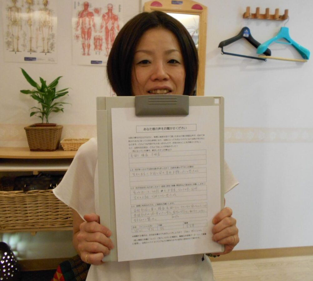 快癒館で施術を受けるようになってから、施術中は眠ってしまうほどリラックスでき、夜中に目が覚めることも無くなりました。