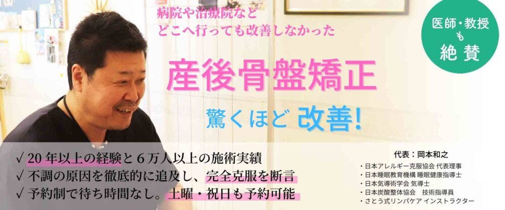 出産後は仙腸関節や仙骨関節を調整することが多くありますが、骨盤が開いた後に、なかなか上手く戻らない事が多々あります。
